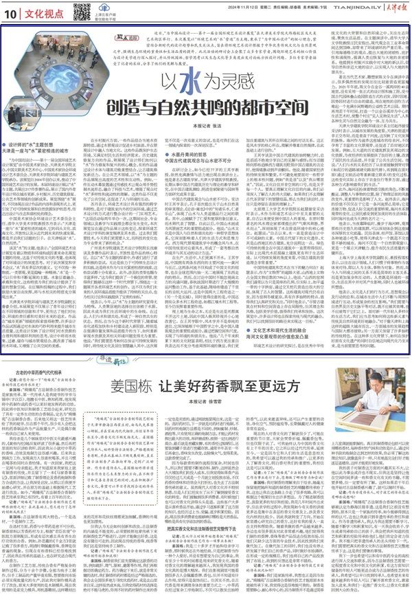 中国美术家协会环境设计艺术委员会主任、清华大学美术学院教授苏丹表示:“天津是一座与‘水’紧密相连的城市,它的码头文化、滨海文化、开放性以及从近代到未来的快速发展,都是开启我们话题的引子。在天津畅谈‘水’,自然而然。”