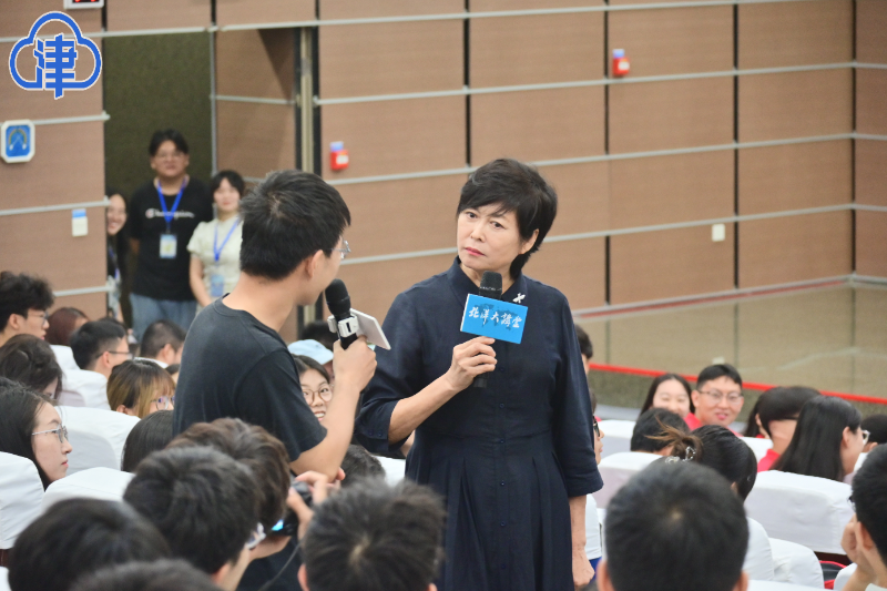 “沟通能力是现代社会成年人的基本需求,也是基本素养……”敬一丹从自己的求学、主持经历讲起,告诉天大同学们,新媒体、智媒体时代传媒人应具备怎样的素质、做好怎样的准备。她走到学生中间,以随机采访的方式与学生交谈,并邀请从未有过当众表达经历的学生跟她一起登上讲台互动,用这些沉浸式、体验式的方式告诉大学生们沟通的重要性,也启发大家要注重培养自己的沟通能力。接着,敬一丹从如何做好面对面的沟通、如何做好表达以及与更多的人沟通、如何用媒体与世界进行更广泛更有质量的沟通三个层次,由浅入深地引导同学们思考如何建设自己的沟通能力,并以自己多年采访主持的经历告诉同学们:面对面交流要善于倾听,让目光相遇,让情感联通;在新媒体时代,镜头无处不在,甚至有时面对镜头是“刚需”,所以要熟悉镜头、学会运用镜头。她还讲解了如何减少干扰因素、如何保障主体内容的输出与传播等具体做法。对于如何应对人工智能技术对传媒业的挑战,敬一丹也给出了中肯建议。通过她主动迎接挑战、打造新媒体栏目的亲身体验,敬一丹告诉进入天大新传学院的准媒体人:“新媒体、新技术催促我们媒体人要提高自己的观察力、感受力、判断力,要用我们的敏感感受传递、表达人类独有的情感,这是人工智能无法取代的。”