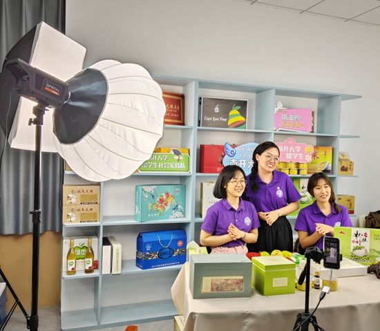 南开大学组织来自俄罗斯、尼日利亚、塔吉克斯坦、越南等国家的6名留学生,组成“国际学生助力乡村振兴·讲好文旅发展中国故事”留学生社会实践队,赴山东省烟台市龙口市开展社会实践。3名来自越南的留学生作为嘉宾参与直播带货,帮助当地农户销售粉丝、梨膏、茶叶等农产品。南开大学供图