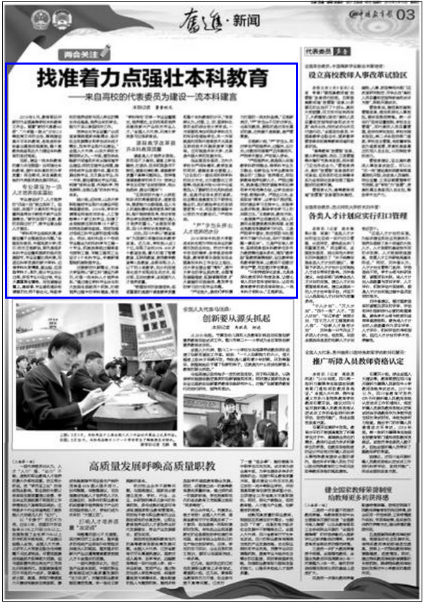 当前,建设一流本科教育的着力点在哪里?如何强壮本科教育,提升本科高校的办学质量?两会期间,来自高教战线的代表委员就此展开热议。