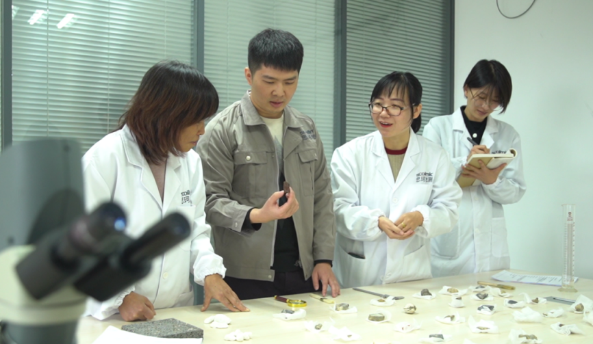 赵通与团队成员进行岩石热物性探讨(央广网发 受访者供图)