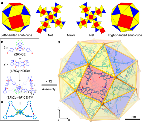 据介绍,2000多年前,古希腊数学家阿基米德提出了13种阿基米德多面体,以结构复杂而著称。阿基米德多面体一直备受数学家、化学家、材料学家所关注,此类基础性前沿研究可以对新材料、生物医药、化学化工等领域产生深远的影响。比如,许多球形病毒衣壳和铁蛋白展现出类似阿基米德多面体的拓扑结构。设计并合成超分子扭棱立方体,为理解球形生物大分子在生物系统中的形成与功能执行提供了重要途径。