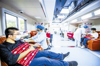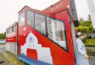 9月24日,天津大学北洋园校区献血方舱正式投用,这是全国首个坐落在高校内的献血方舱。方舱总面积40余平方米,采用航天材料制作,保温性能好,舱内有中央空调循环系统,还设有头等舱沙发和无线网络。方舱分登记区、快检区、等待区、采血区等4个区,能满足4个人同时采血,为高校学子提供更加舒适、温馨、整洁的献血环境。 本报记者 曹彤摄