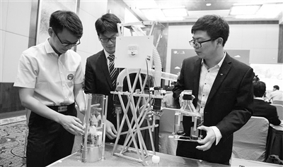 5月20日,第六届全国大学生“生态创想·绿色行动”环保大赛在天津举行。大赛由中新天津生态城投资开发有限公司(生态城合资公司)与北京德鲁克管理学院共同举办,旨在鼓励环保领域的社会创新和科技创新,在大学生中积极推广可持续发展的生活方式。图为天津大学代表队的低速流体发电机项目。