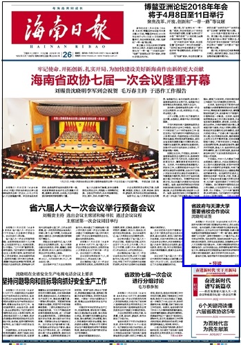 《海南日报》(2018年1月26日 头版)