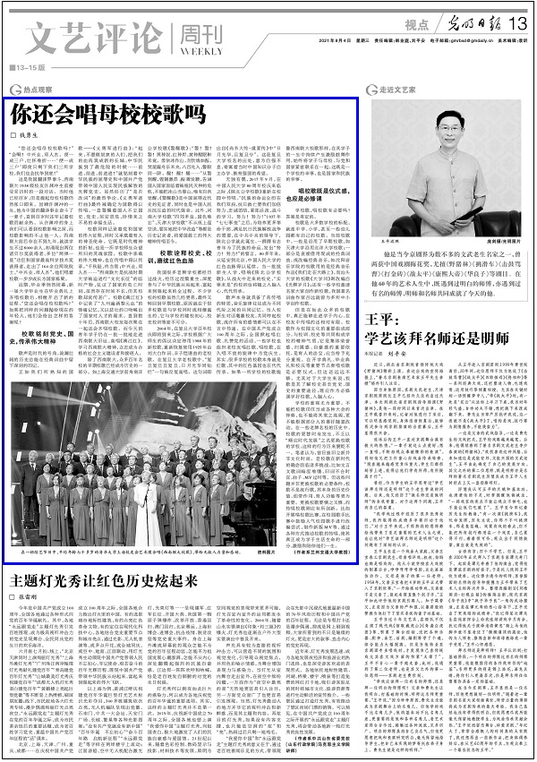 歌声本身就具备了易传唱的特质,音乐旋律往往成为不同代际之间的共同记忆。当入校新生对话耄耋校友,共同哼起校歌,或许所有的感情都可以在不言中传递。在中国共产党成立100周年之际,全国掀起唱红歌、礼赞党的活动,一些学校也组织老校友唱红歌、唱校歌,在久唱不衰的旋律中为党庆生。其实,很多学校的校歌本身就是红歌,其中的红色基因也在代代传承。如果一所学校的校歌能像西南联大校歌那样,在其学子的一生中持续产生激励鼓舞作用,始终将学子与母校、与党和国家紧密联系在一起,这既是一个学校的幸事,也是国家和民族的幸事。