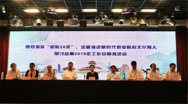 7月13、14日,“贯彻落实‘职教20条’,全面推进新时代职业院校文化育人”研讨会暨2019年工作中期推进会在山东省济南市召开。来自全国百余所职业院校近80位书记校长和200多位专家学者共聚一堂,共同探讨“职教20条”背景下职业院校文化育人工作,研究部署文化素质教指委下半年工作。会议期间,教育部职业院校文化素质教指委书画教育研究院宣布成立并举行揭牌仪式。