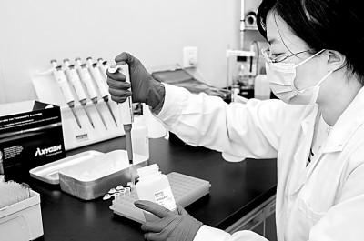 在内蒙古自治区林业科学研究院承担的“沙地生物资源保护与培育国家林业和草原局重点实验室”,科研人员在进行分子生物学操作。丁根厚摄/光明图片