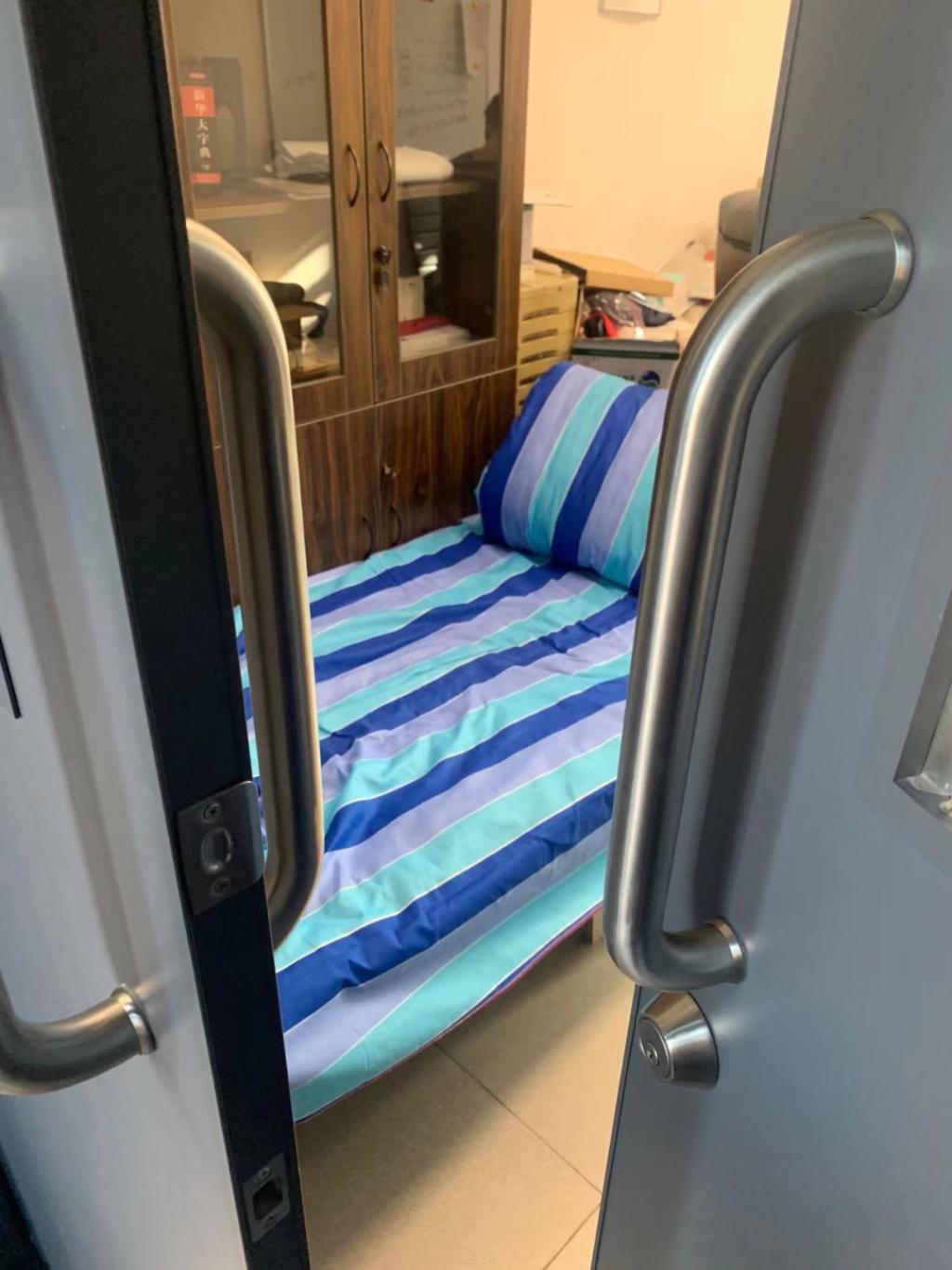 结束了会议,就在梁行在前台办理退房手续的短短几分钟时间,他转身看到了已经仰在沙发上睡着了的王老师,并用手机拍下了这张照片。