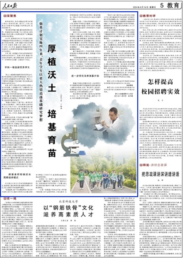 “现实中,部分高中毕业生的自我认知能力不足,面对基础学科专业选择时,往往缺乏独立思考和清晰认知。”王新凤说,“要选拔培养有志于服务国家重大战略需求的基础学科创新人才,就必须高度重视大学和中学衔接,鼓励高校与中学建立联合培养模式,为人才选拔提供蓄水池。”
