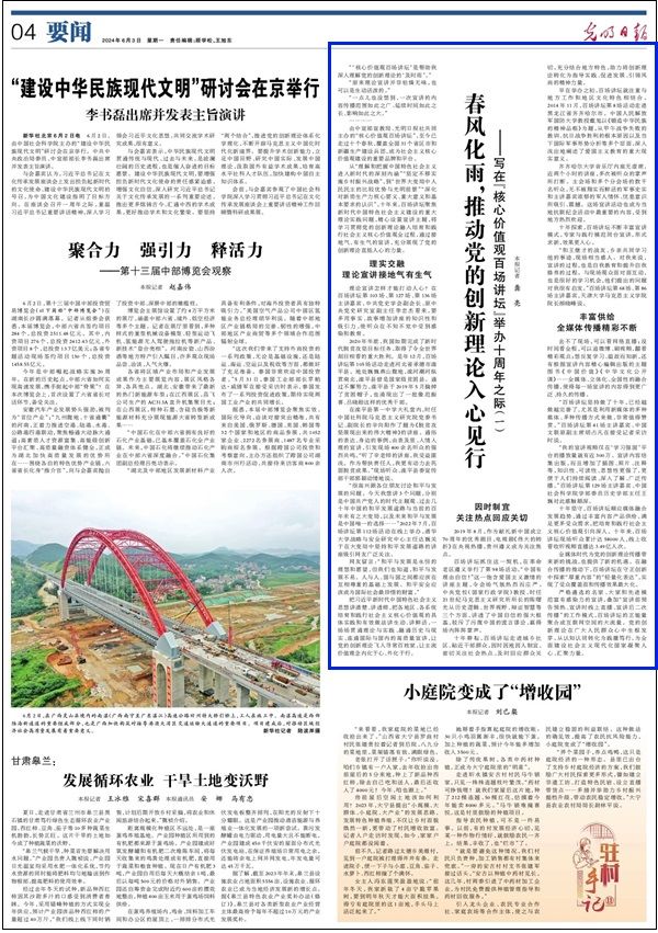 从“理解和把握中国特色社会主义进入新时代的深刻内涵”“坚定不移实施乡村振兴战略”,到“世界大变局中人民民主的比较优势与光明前景”“深化对新质生产力核心要义、重大意义和基本要求的认识”,十年来,百场讲坛聚焦新时代中国特色社会主义建设的重大理论实践问题,精心设置宣讲主题,将学习贯彻党的创新理论融入培育和践行社会主义核心价值观全过程,通过接地气、有生气的宣讲,充分展现了党的创新理论直抵人心的力量。