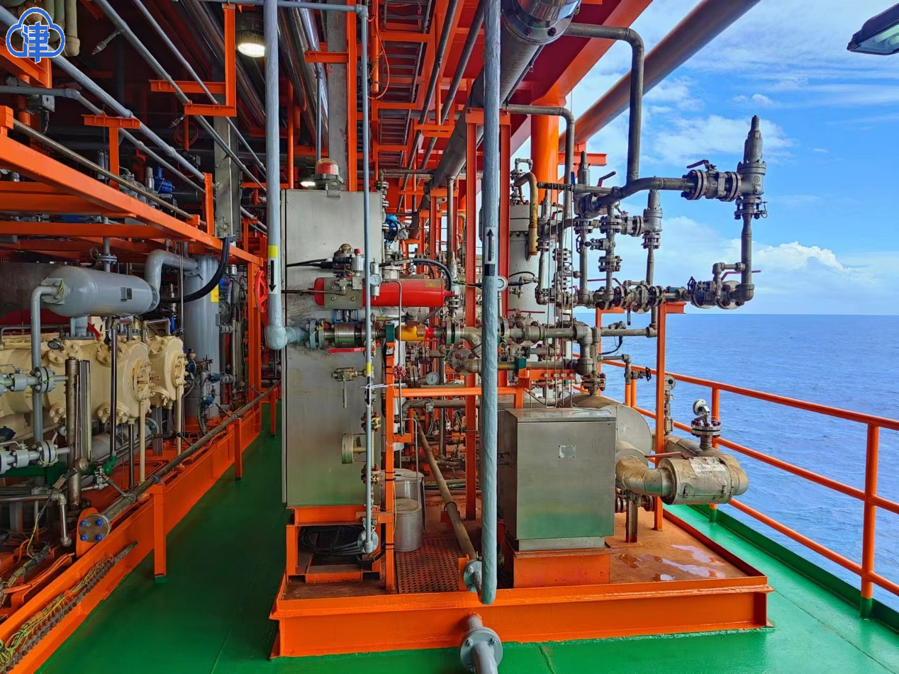“针对海上天然气深度脱除二氧化碳过程中,塔吸收法的占地面积大、能耗高、操作弹性低、不适用于海上摇摆工况等难题,我们设计并开发了新型膜分离技术与装备,较传统塔吸收法重量减少1/5,高度下降60%。这个新型膜分离技术主要应用于FLNG船液化天然气的预处理环节,该技术国内外均处于研发阶段,开发国产化FLNG预处理技术及应用系统,对我国深远海气田、边际气田盈利开采意义重大。”李成介绍说。