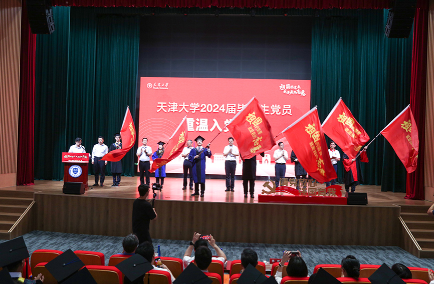 活动现场,毕业生党员代表从所在学院院级党组织书记手中接过书写着“祖国的需要就是我的志愿”的旗帜,承载着殷殷嘱托,同学们即将到基层建功立业,让青春之花绽放在祖国最需要的地方。在天津大学党委副书记韩庆华的带领下,全体师生党员现场重温入党誓词,激励同学们赓续红色基因,凝聚奋进力量,在实现中国梦的伟大实践中书写别样精彩的人生。