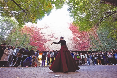 近日,天津大学唱秋·2024第六届红叶季活动热闹举行。在冯骥才文学艺术研究院,一场艺术盛宴精彩呈现。诗歌音乐沙龙中,年轻学子们活力满满地吟诗、弹唱、起舞,而白发苍苍的老教师们也积极参与其中。他们眼中闪烁着光芒,与年轻人交流互动,分享着人生的智慧与感悟。老教师们用心为明天的自写下一封信,回忆过往,展望未来。他们还拾起红叶,精心拓印成画,在校园最美的角落留下难忘的身影。此次活动,老少携手,共同感受艺术魅力,让充满人文情怀的校园更加温馨动人。本报记者史 嵩摄