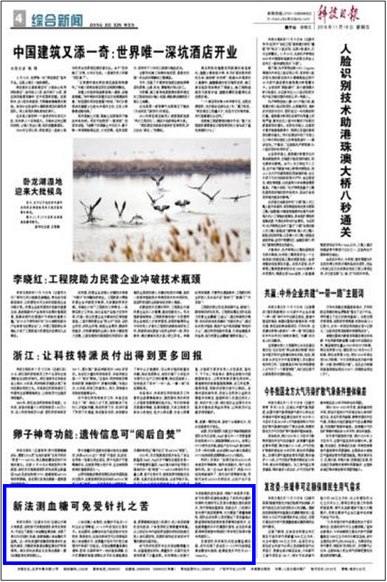 徐可欣研究团队专注无创血糖测量20年,在基础理论研究、测量技术、仪器开发方面均积累了大量成果。针对降低人机接口与皮肤随机变化扰动、消除个体差异方面,徐可欣团队创造性地提出了采用多位置环状接收光谱信号以及差分数据处理的新技术,用于抑制体温波动、皮肤出汗、人机接口变化等干扰因素影响,大大提高了测量准确性;团队还在世界上首次提出了浮动基准点数值等抑制皮肤散射差异影响的新技术,这些新测量技术不仅属国内首创,还先后申请获得两项美国专利授权(同专利已取得中国专利授权)。
