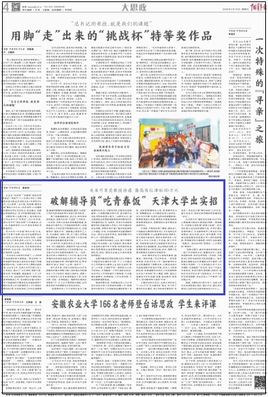 在天津大学,辅导员全员参与《大学生心理健康》《职业生涯规划》等第一课堂教学,全程参与思政课“授课小组制”,担任团队核心成员组织课程开发、内容打磨以及课件修订,专业教师和学工两支队伍协同联动,取长补短。此外,每年暑期,学校通过选派辅导员赴重点用人单位挂职锻炼,帮助辅导员开阔视野,当好行业发展的“宣教员”、校企合作的“联络员”、人才需求的“调查员”。