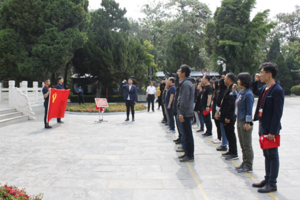 在焦裕禄纪念园,天津大学科研院院长崔振铎教授向焦裕禄烈士敬献了花篮,大家怀着崇敬的心情拜谒了焦裕禄烈士墓,向焦裕禄烈士三鞠躬、重温入党誓词、绕陵墓一周,表达了深深的敬意。
