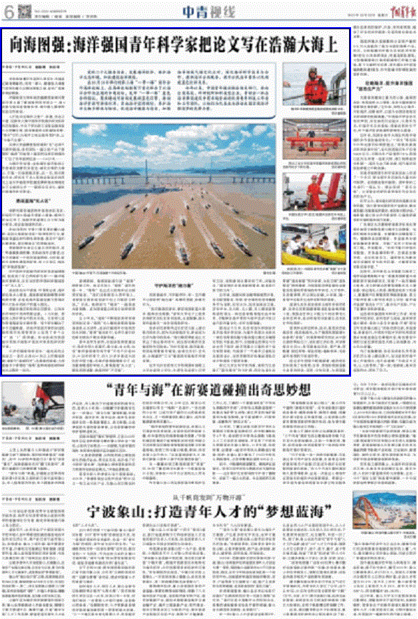 今年以来,中国青年报社联合相关部门,面向全国高校、科研院所和科技型企业,寻访出一批在海洋强国建设中有卓越贡献的优秀青年科技工作者和工作团队,以他们为代表成为推动我国实现海洋强国梦的先锋力量。