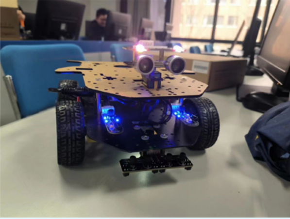 学生们在课堂上展示研制组建的自动寻迹小车。
