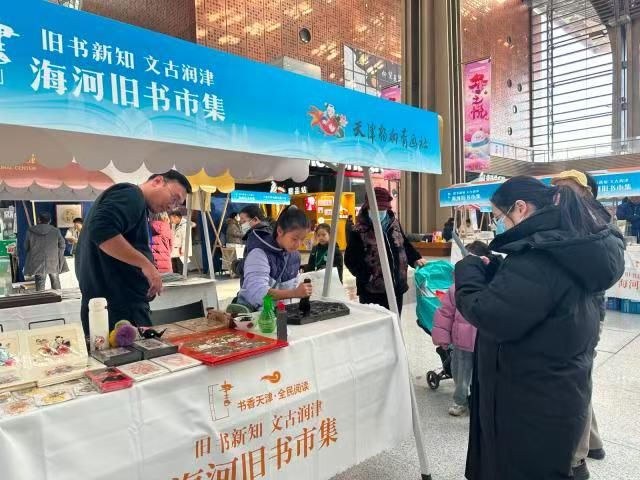 值得一提的是,活动现场还设置了图书漂流区,市民读者可将家中闲置旧书带到现场,与他人进行交换,让旧书找到新的知己,从旧书获得新的知识。滨海新区新华书店也在现场提供图书借阅服务,共同倡导绿色阅读。“今天天气很冷,但是文化中心里氛围火热。我带着孩子换了旧书,看了展览还体验了制作杨柳青年画。孩子很有收获,玩得也很开心。”一位市民说道。