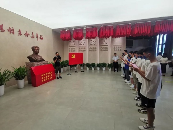 8位获奖新生在张太雷铜像前宣誓,并参观张太雷纪念馆。