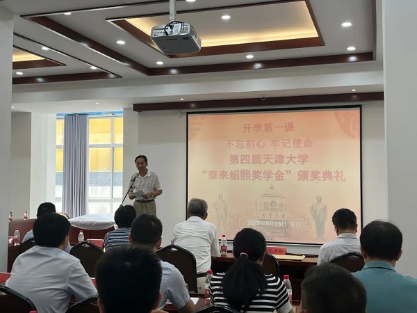 由天津大学北洋教育发展基金会、中国剪报社、常州三杰纪念馆、常州剪报发展有限公司、天津大学常州校友会等联合举办的开学第一课——不忘初心、牢记使命,第四届天津大学“泰来绍熙奖学金”颁奖典礼2022年8月13日在中国剪报觅渡书院隆重举行。