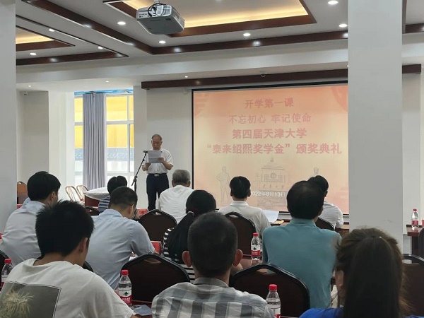 汪曣、张力航、张跃、朱明辉、田海明等领导和嘉宾为新生颁奖。新生代表常易初发言,她表示,获得“泰来绍熙奖学金”是一份沉甸甸的责任,在未来的学习生活中要接受挑战,无愧于先辈们的期望,为中华民族的伟大复兴添砖加瓦。
