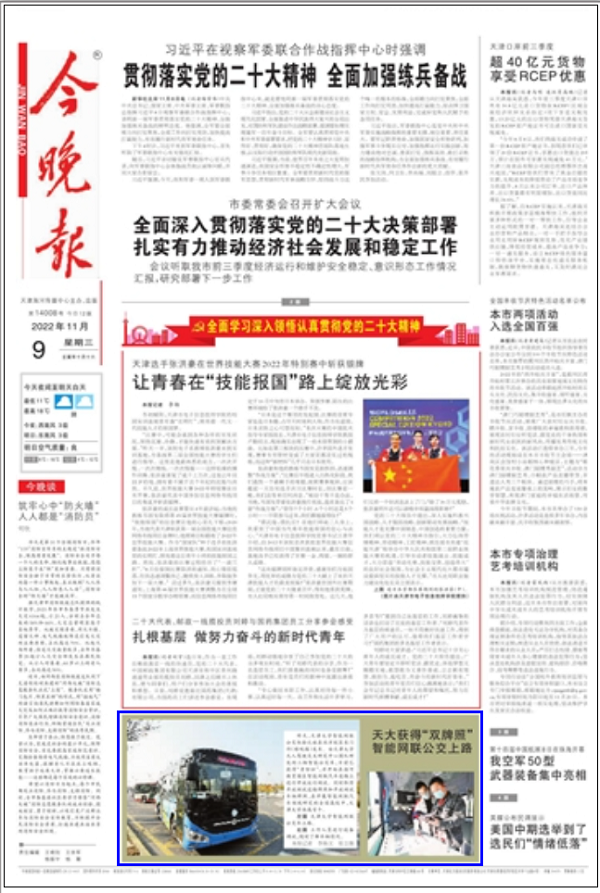 天津大学智能网联公交车上路
