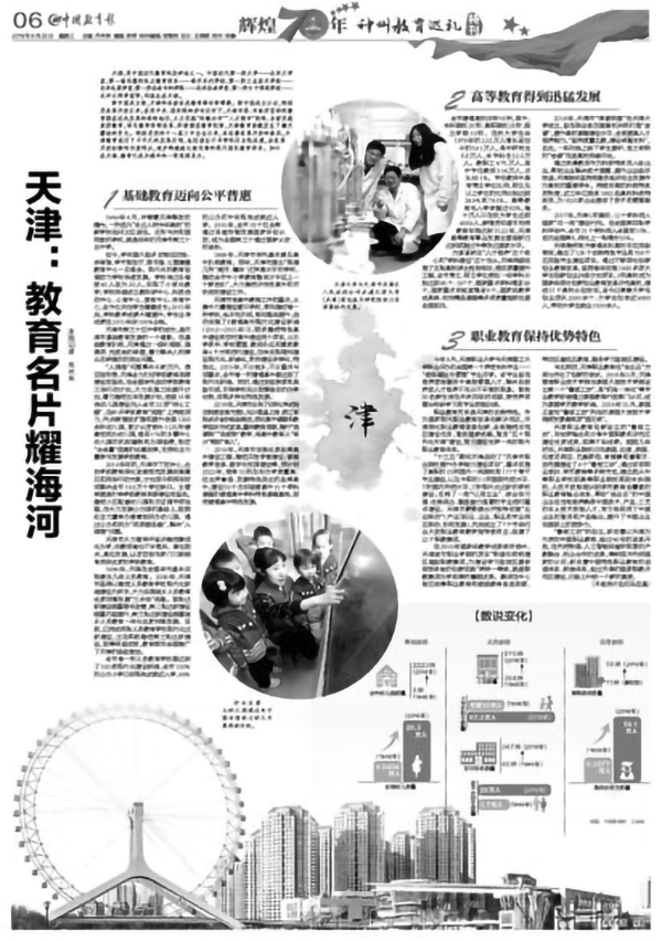新中国成立前,天津的各级各类教育都非常薄弱。新中国成立以后,特别是改革开放以来,在党中央、国务院的亲切关怀下,天津市委、市政府坚持把教育摆在优先发展的战略地位,大力实施“科教兴市”“人才强市”战略,全面实施素质教育,深化教育体制改革,积极推进教育创新,天津教育面貌发生了翻天覆地的变化。特别是党的十一届三中全会以来,沐浴着改革开放的春风,天津教育经历了不平凡的发展历程,也创造出不寻常的历史性成就,由改革开放初期的百废待兴,逐步构建起比较完善的现代国民教育体系。如今在天津,教育已成为城市的一张亮丽名片。