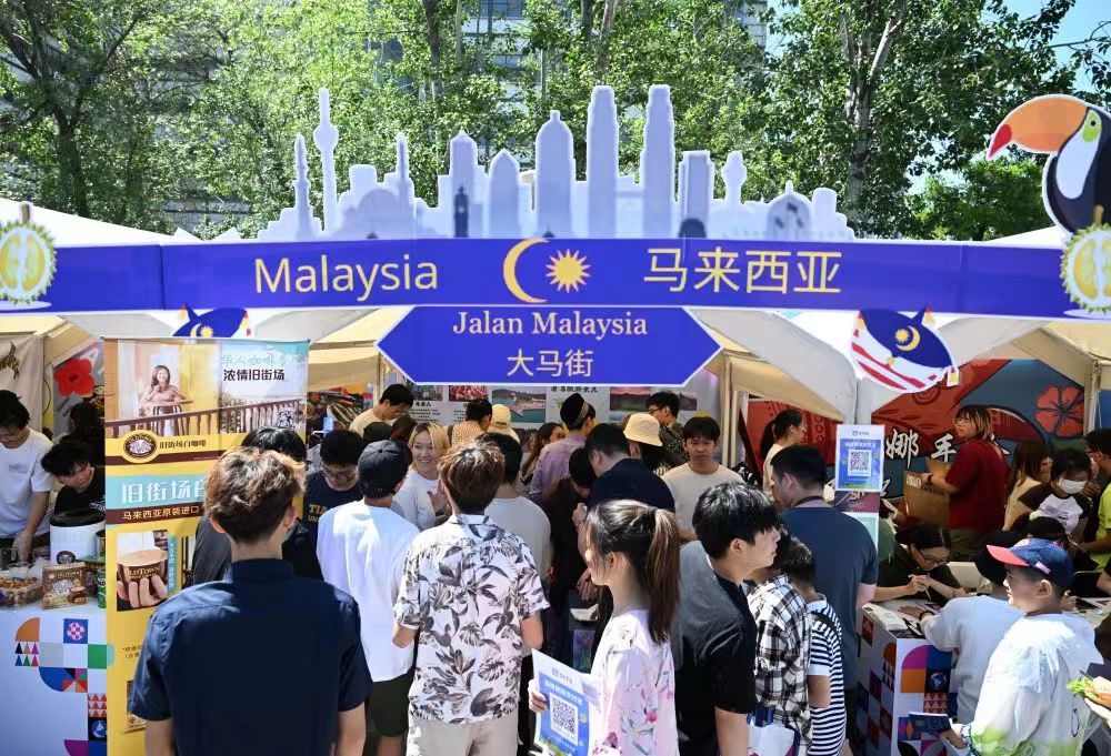5月12日,师生和游客在天津大学国际文化节马来西亚展位前参观。