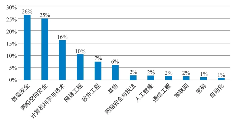 意向从业安全测评工作的在校学生所读专业情况