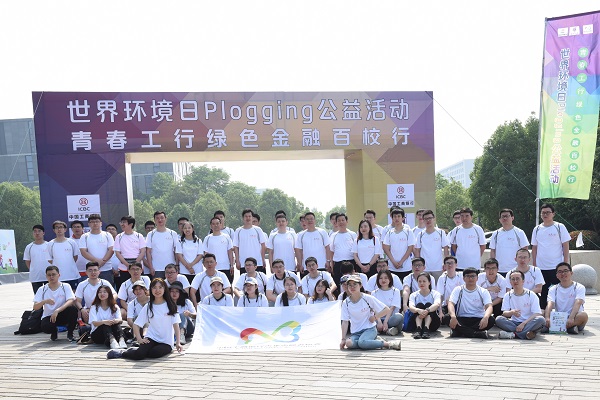 人民网讯 第48个“6·5”世界环境日,工商银行发起“青春工行·绿色金融百校行”(Plogging)青年志愿者公益活动,来自全行的5500名青年志愿者和17000多名在校大学生跨时空联跑,用时下最时尚的形式践行绿色公益,唤起大众对环保的关注,并与金融知识进校园有机结合,助力校园金融环境净化,积极践行国有大型银行社会责任。