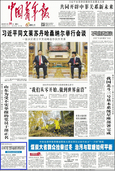 中国青年报头版:http://zqb.cyol.com/html/2018-11/20/nw.D110000zgqnb_20181120_7-01.htm