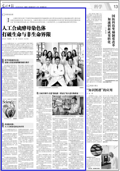2018年5月,天津大学合成生物学研究团队在《自然·通讯》杂志同期发表3篇研究长文,介绍了精确控制基因组重排技术等一系列研究成果。