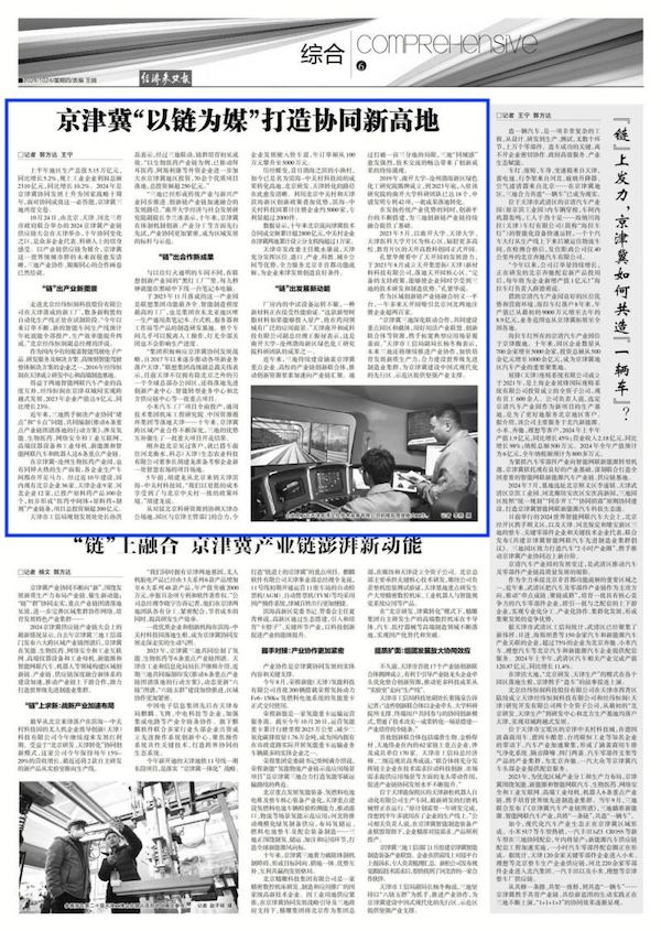 近年来,三地持续建设涵盖京津冀重点企业、高校的产业链创新联合体,推动创新资源要素加速向产业链汇聚。通过打破一亩三分地的局限,三地“同城感”愈发强烈,技术交流的畅达带来了创新成果的持续涌现。