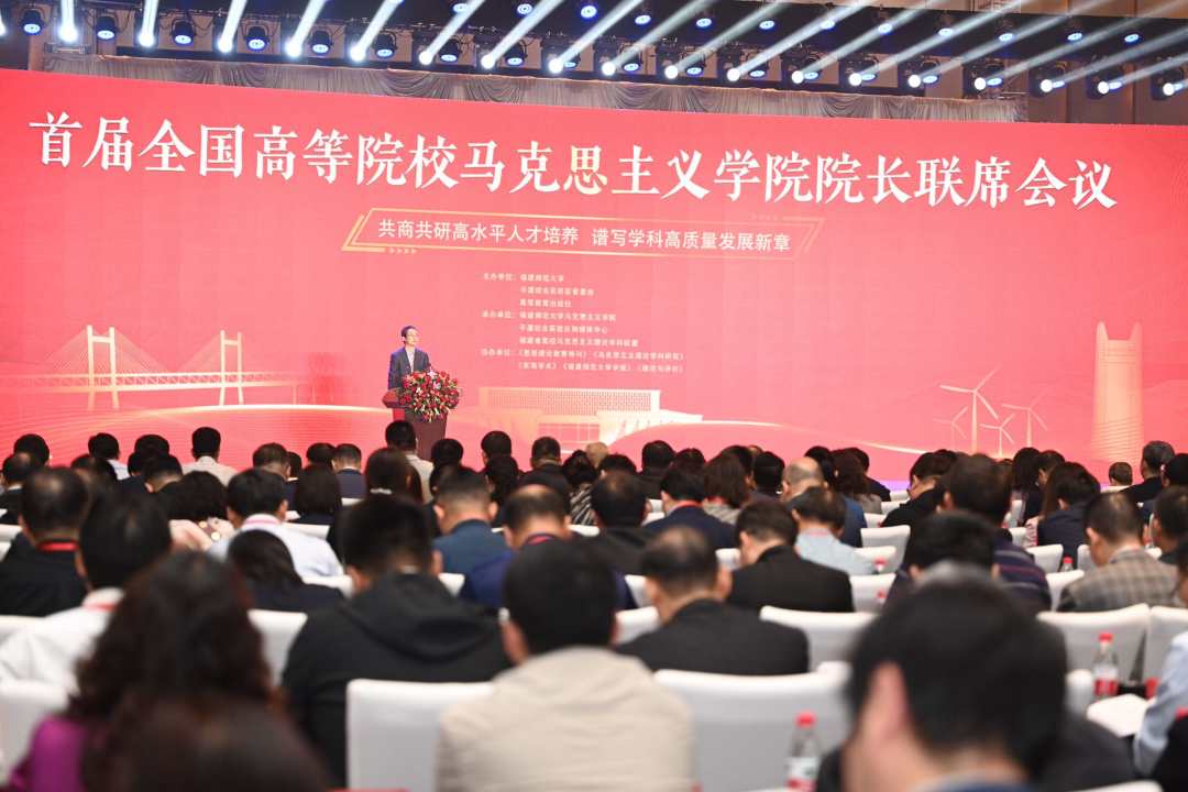 叶燊代表省委教育工委、省教育厅对首届全国高等院校马克思主义学院院长联席会议顺利召开表示祝贺。他指出,福建作为习近平新时代中国特色社会主义思想的重要孕育地和实践地,在谱写马克思主义中国化时代化新篇章上具有独特优势、肩负重大使命。要聚焦高质量、高标准、高水平,协同推进学科建设、办好思政课程、深化研究阐释。希望全国高校马克思主义学院院长联席会议这一平台,更好发挥拓展交流合作、深化协同联动作用,携手构筑人才培养新高地、展现学术创新新成就、攀登学科发展新高度。