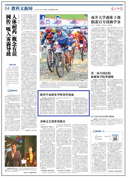 本报天津11月26日电(记者陈建强 通讯员张华)随着我国商品燃油的需求量不断增加,石油进口的对外依存度逐年攀升,研发石油替代燃料对提升我国能源安全具有重要战略意义。天津大学机械学院教授姚春德带领科研团队研发的柴油甲醇组合燃烧技术突破了甲醇难以压燃的应用障碍,用生产原料丰富的甲醇替代柴油,替代率达到45%以上。该技术近日在机械工业科技大会上荣获2016年度中国机械工业科学技术奖一等奖。