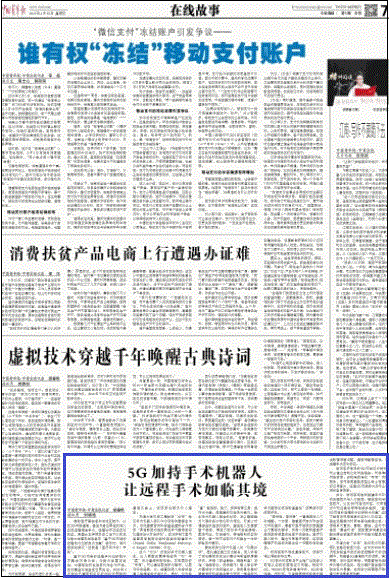 基于5G网络的远程手术创新技术方案由天津大学、伦敦大学国王学院、中国移动研究院等机构合作开发。该方案连日来备受世界关注。2019年2月底在巴塞罗那召开的2019世界移动通信大会上,该项目也颇为引人瞩目。