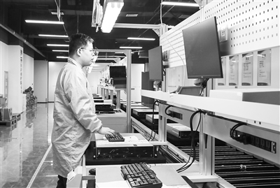 图为在位于廊坊三河市的京津冀国家技术创新中心燕郊中心,联泰集群算力(三河)科技有限公司的工作人员对装配好的产品进行检验。新华社记者 单宇琦摄