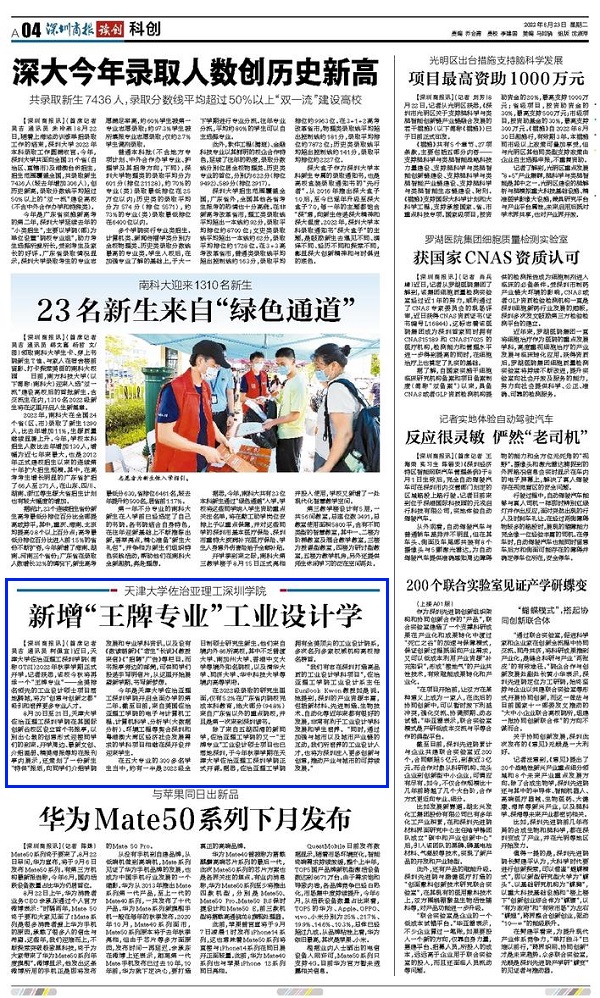深圳商报:天津大学佐治亚理工深圳学院 新增“王牌专业”工业设计学