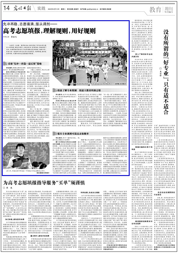 七分考,三分报。高考结束后,报志愿成了考生和家长最关心的问题,理想与现实、兴趣与就业,谁前谁后,孰轻孰重?为此,本报将连续推出关于高考填报志愿的报道,邀请专家、学者以及一线教师为考生及家长出谋划策、化解难题,提供更具针对性、可操作性的志愿填报指导服务。