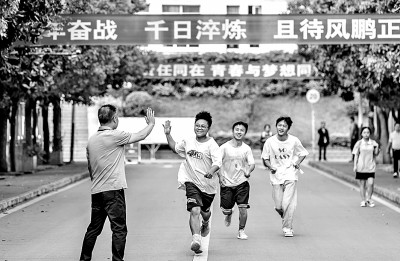 6月7日,贵州省黔西市考区黔西一中考点,老师在欢送考生奔赴考点。范晖摄/光明图片