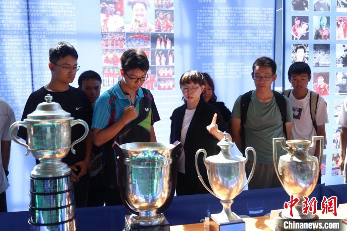 图为朱雨玲为大学生讲解乒乓球相关藏品。 主办方供图 活动现场以图文等形式展现了乒乓球的发展历史和乒乓球在中国的辉煌历程。参观者可了解乒乓球运动的起源和沿革过程,知晓乒乓球运动何以成为中国“国球”,领悟国乒辉煌成绩背后难能可贵的“国球精神”。巡展还专门设有乒乓游戏体验区,可供参观者感受乒乓游戏新玩法。