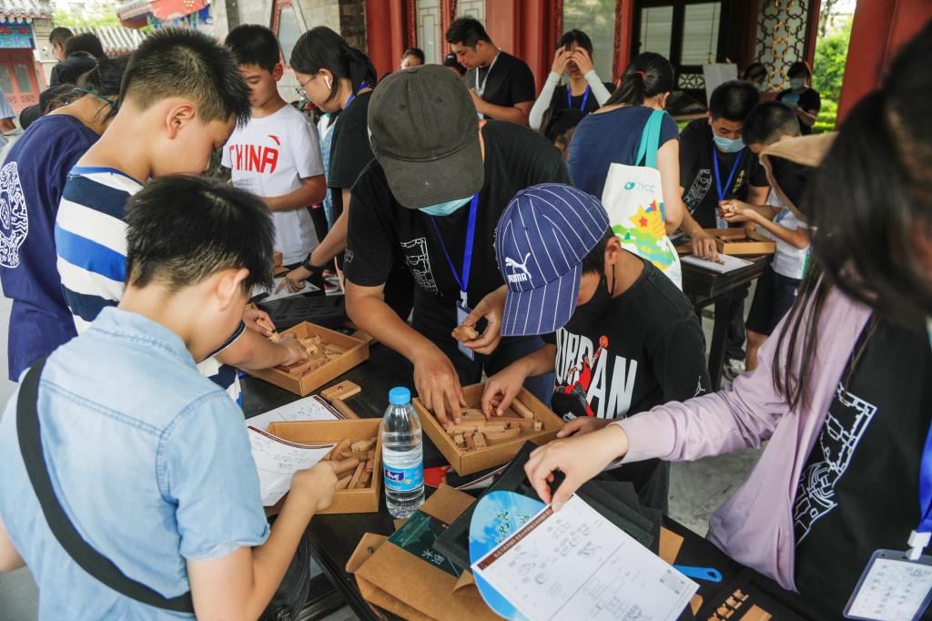 在这节美学公开课上,天津大学教授张龙老师带领同学们先参观了李纯祠堂,介绍了不同类型建筑的特征与文化,随后在后殿内指导学生拼装建筑学院自主开发的建筑拼插玩具——古典建筑重要节点“斗拱”,让孩子们在动手中领略中国古典建筑的独特魅力。天津大学建筑学院党委书记、院长宋昆教授说:天津大学建筑学院作为在津建筑教学、科研单位,为天津的建筑遗产研究、保护、传承提供智力支撑,是我们应尽的社会职责,也是我院的重要研究方向,后续我们也将持续推进与莊王府的全面合作,将其建设成为天津的建筑文化科普基地。