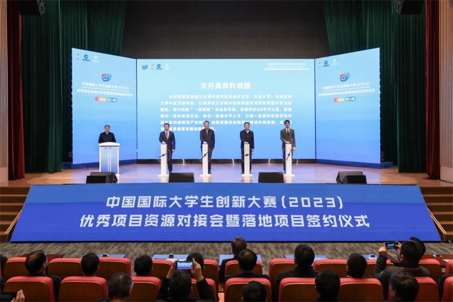中宏网天津12月9日电 记者从教育部新闻办了解到,12月6日,中国国际大学生创新大赛(2023)冠军争夺赛、大赛优秀项目资源对接会暨落地项目签约仪式在天津大学举行。天津市委书记陈敏尔出席相关活动。教育部党组书记、部长怀进鹏,天津市委副书记、市长张工出席并讲话。教育部党组成员、副部长吴岩主持大赛优秀项目资源对接会。天津市委常委、教育工委书记王旭,天津市副市长张玲,天津大学党委书记杨贤金、校长金东寒出席上述活动。