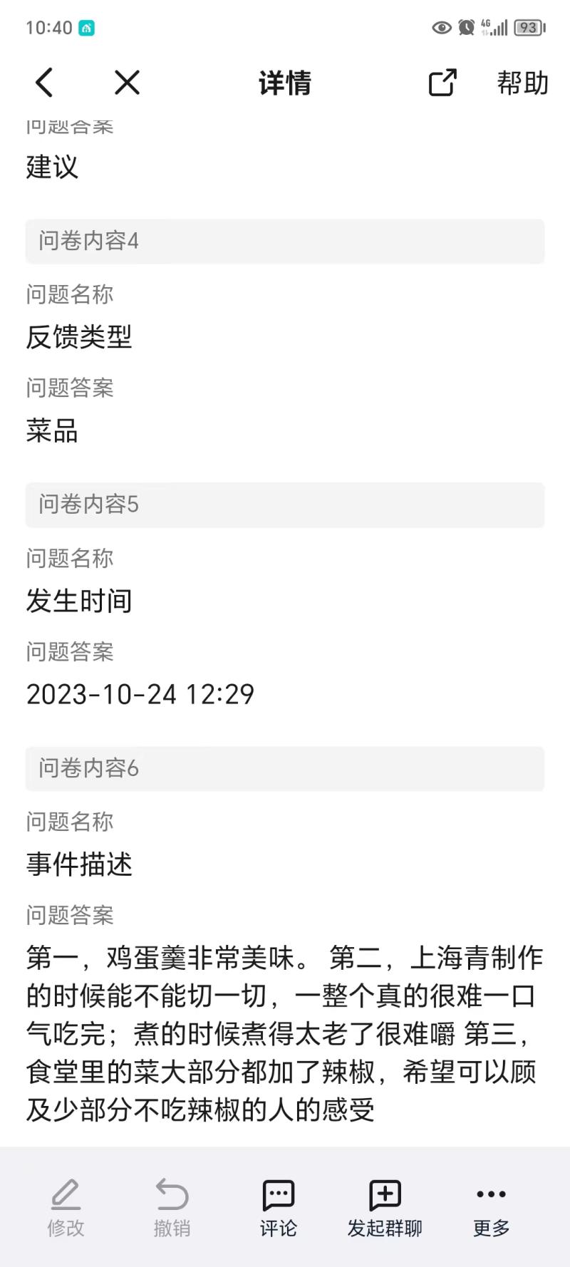 截至12月5日,通过这个小小的“二维码”,学校就收到来自师生的投诉建议400余条,主要集中在投诉建议、好评表扬等几个方面。针对不同内容,食堂经理会第一时间与师生取得联系,倾听师生的诉求,积极做出反应,快速圆满处理相关问题,对于建议类的信息,食堂也会积极评估、论证,并将推进落实情况及时反馈给相关师生。