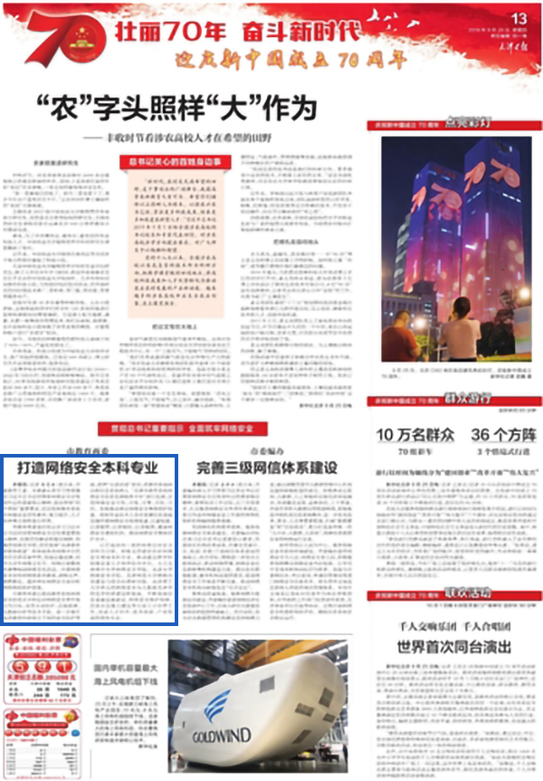 以打造国内一流的网络空间安全学科为目标,积极支持建好办好网络安全领域本科专业,推动建立跨学科网络安全人才培养综合平台,大力支持南开大学网络安全学院、天津大学网络安全学院、天津师范大学网络内容建设与综合治理研究院、天津理工大学牵头的网络安全与大数据天津市特色学科群建设和发展,不断加强信息基础设施建设、网络安全维护保障、信息应急能力建设等方面人才培养工作,形成人才培养、技术创新、产业发展的良性生态。