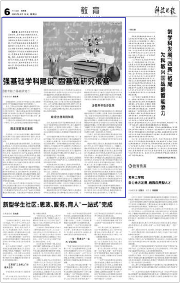 “推动基础学科发展,还需要学科集群深度融合。”扬州大学校长丁建宁说,要融合的第一件事就是打破壁垒。“近年来,扬州大学也在不断尝试,推进农科教结合、产学研协同、校地企融合协同育人。”丁建宁表示。