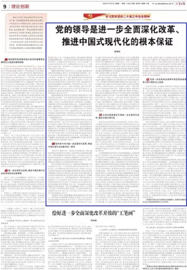 党的二十届三中全会明确指出,当前和今后一个时期是以中国式现代化全面推进强国建设、民族复兴伟业的关键时期。在这样一个关键时期,必须紧紧围绕推进中国式现代化进一步全面深化改革。面对新形势新任务新要求,更要突出强调党的领导的根本保证作用,更好将这一根本保证作用贯彻到进一步全面深化改革、推进中国式现代化的各领域和全过程。