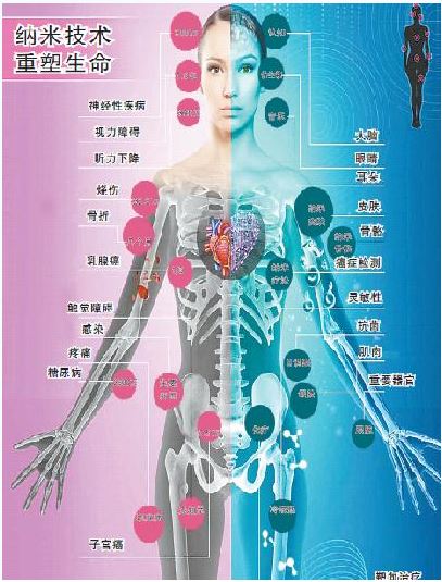 纳米技术的突飞猛进,对医疗和健康产业的影响日趋显著,在药物输送、生物材料、造影、活性植入等医疗应用中大显身手。在常津看来,今后几年,国内纳米生物技术将在微纳米芯片检测、药物靶向治疗、微纳米医用机器人等三个临床医疗领域方向实现“更大用武之地”。此外,纳米技术还将为新药研发带来革命性变化,例如用传统方法寻找抗肿瘤药物非常费时,而运用纳米技术可以一天同时筛选100万种药物,大大缩短新药研发周期。